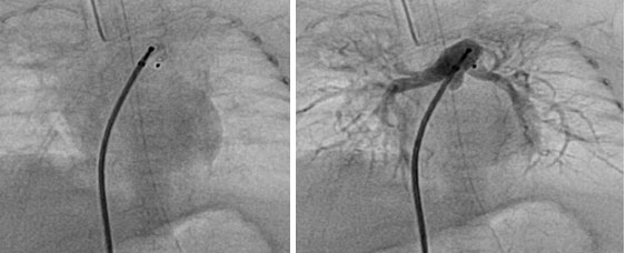 - Cardiac catheterization is indicated in patients with complex pulmonary atresia for the detailed characterization of lung segmental pulmonary vascular supply, especially when non invasive imaging methods incompletely define pulmonary artery anatomy (Level of Evidence: B).