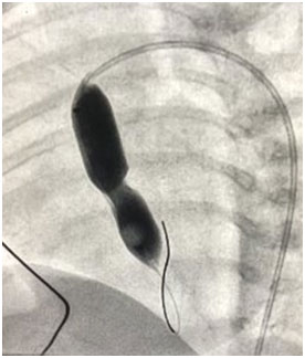 Image showing balloon aortic valvoplasty being done with Tyshak balloon