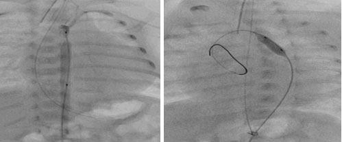 Images showing ballooning of coarctation in 1200 gram preterm newborn.